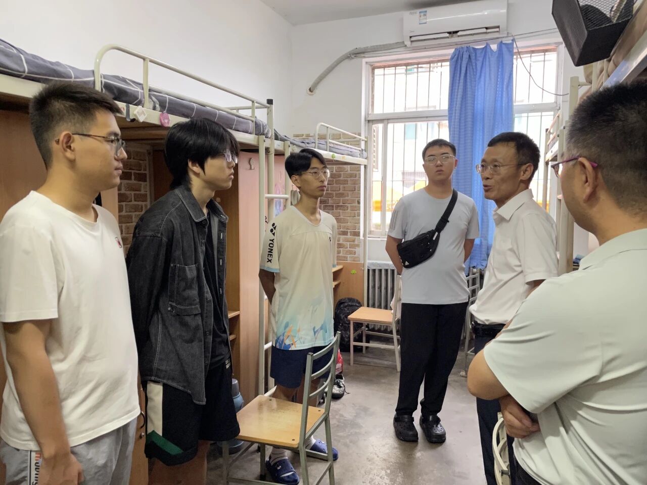 为切实了解新生入学后的生活状况,传递公司对新生的关怀,帮助新生更快适应老员工活,9月4日,副董事长程卫星在理公司党委副书记陈伟伯和2024级、2025级辅导员段佳的陪同下,深入太阳成tyc122cc新生宿舍,与同学们面对面交流,送上暖心叮嘱。