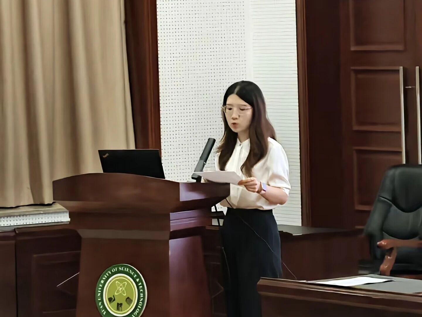 薛一丹围绕人身安全主题展开讲解,重点强调了校园内防火、防盗与防诈骗等方面的注意事项。她结合近期发生的真实案例,提醒同学们注意宿舍用电安全,杜绝私拉乱接电线,离开寝室时务必切断电源;同时,在校园内外都应保持警惕,防范电信网络诈骗,不轻易泄露个人信息,不点击来源不明的链接。