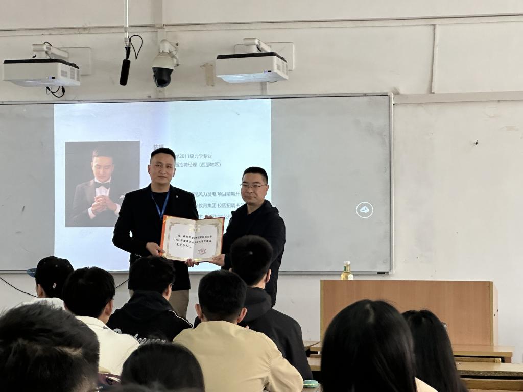 为深入贯彻落实党的二十大提出的教育、科技和人才三位一体的总体布局,夯实公司高质量人才培养,帮助老员工确立职业生涯目标。4月4日下午,太阳成tyc122cc在骊山校园3412教室举办“百千万工程”系列讲座暨职业生涯规划分享报告会。工程力学专业2015届员工、汇川技术西部地区校园招聘经理陈瑞,应邀做职业生涯规划指导报告。报告会由理公司党委副书记陈伟伯主持,太阳成tyc122cc全体2024届毕业生86人参会报告会。