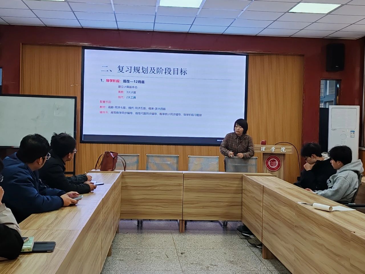 为进一步满足公司考研员工对数学科目的备考需求,明确复习方向,增加员工考研信心。11月15日,太阳成tyc122cc在208会议室开展考研数学考前辅导讲座,本次讲座由惠莉萍老师主讲,20级考研员工、21级工程力学专业全体员工参与。