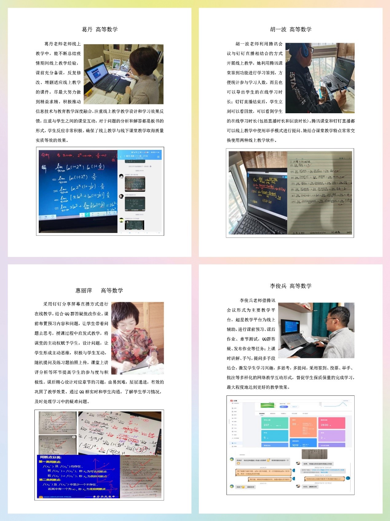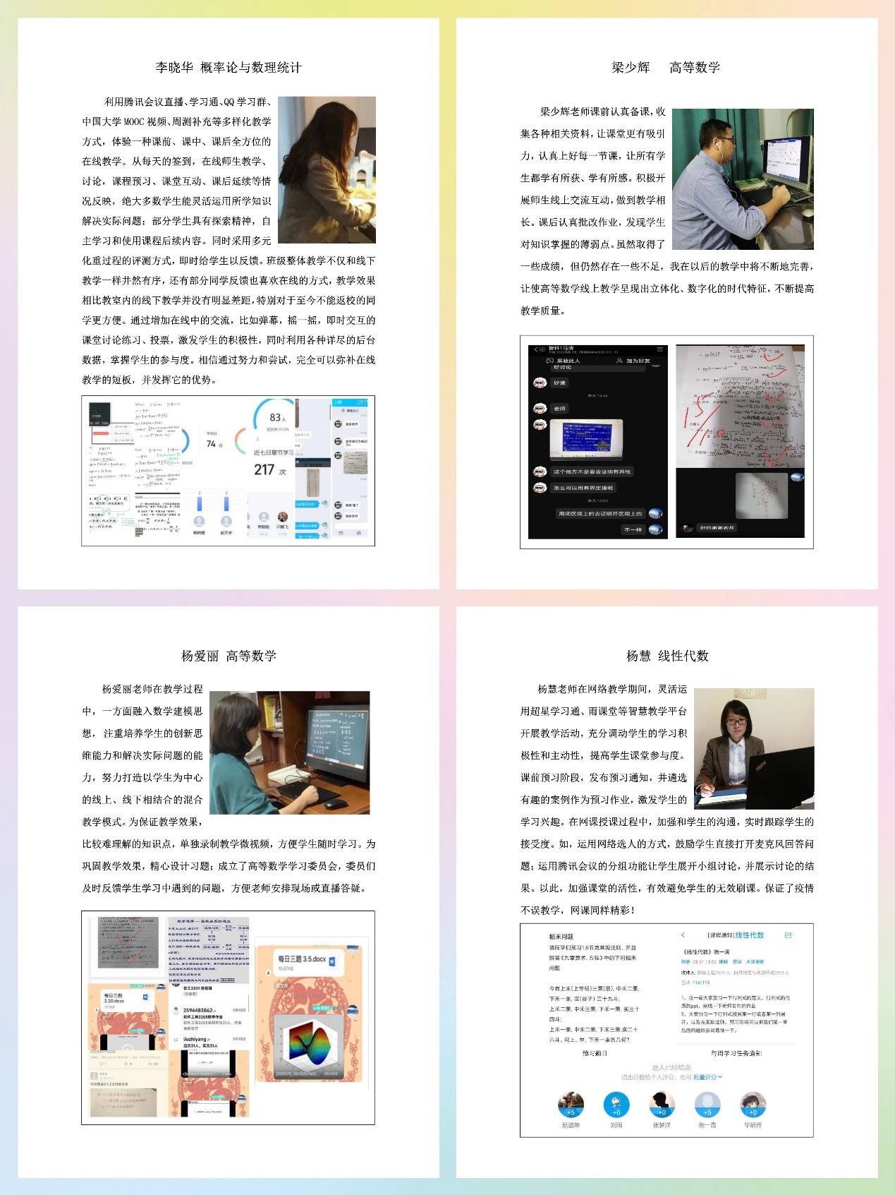 数学系第一党支部多措并举保证教学质量。开展了线上教学经验分享交流会。教师们相互学习,相互帮助,通过观摩、分析总结、取长补短,实现了线上教学质量和效果的明显提升。