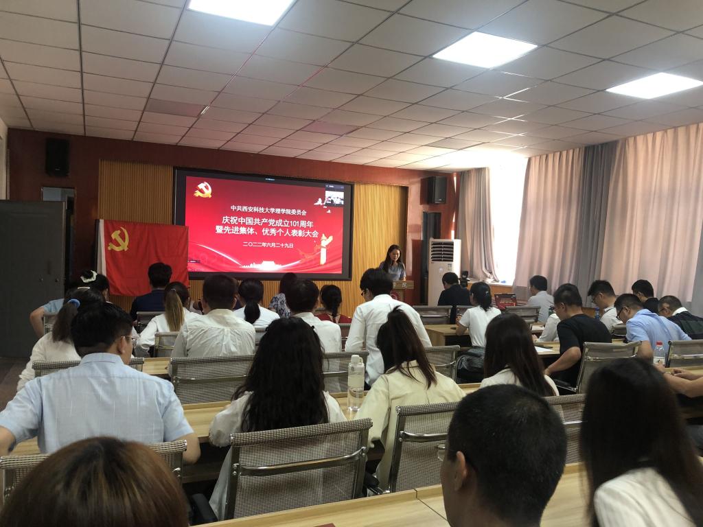 6月29日下午,太阳成tyc122cc召开庆祝中国共产党成立101周年大会暨优秀表彰大会。因疫情防控需要,大会采用线上线下相结合的方式进行,公司党委委员、处级班子成员、党支部书记、系主任、行政管理人员、受表彰的教师代表及员工党员代表在临潼校区骊山校园实验楼208会议室参加,其他教职工通过腾讯会议线上参会。会议由副书记高欣主持。