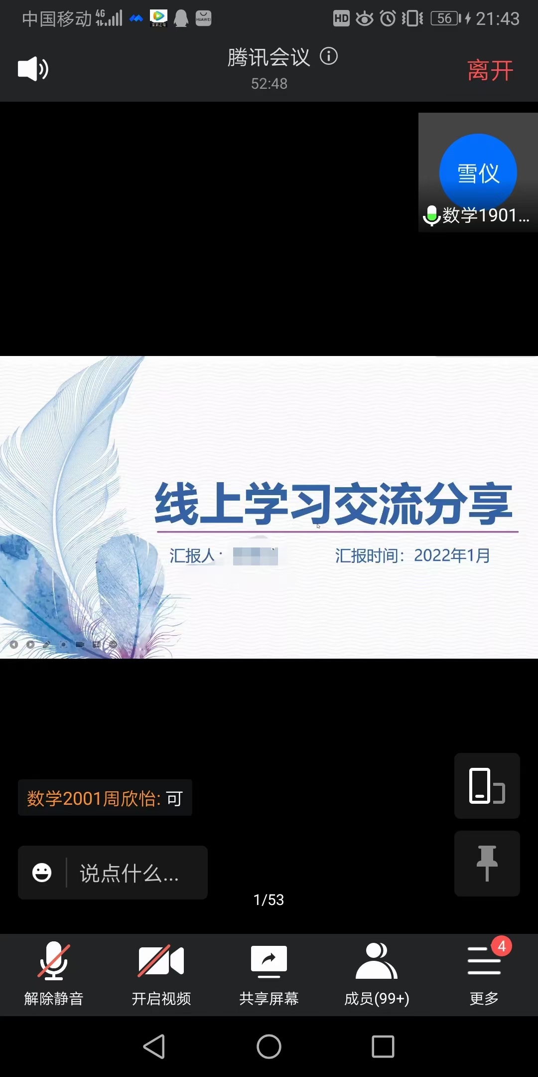 员工党员郭雪仪:分享了自己之前网课学习的经历,希望同学们做好课前预习,上课认真听讲,对数学专业课的学习分享了一些行之有效的学习方法。希望大家在闲暇之余对自己的未来有一个明确的规划。