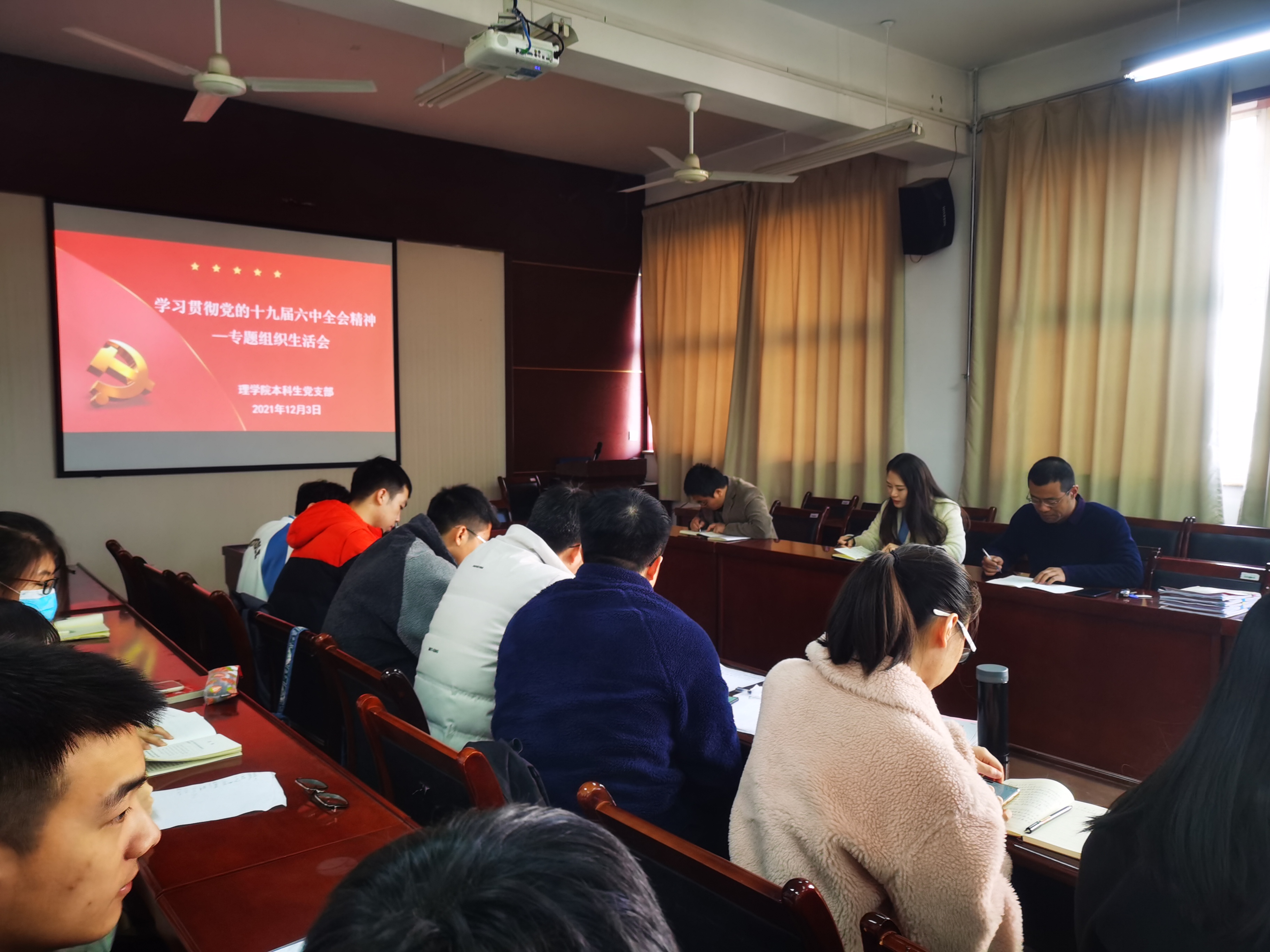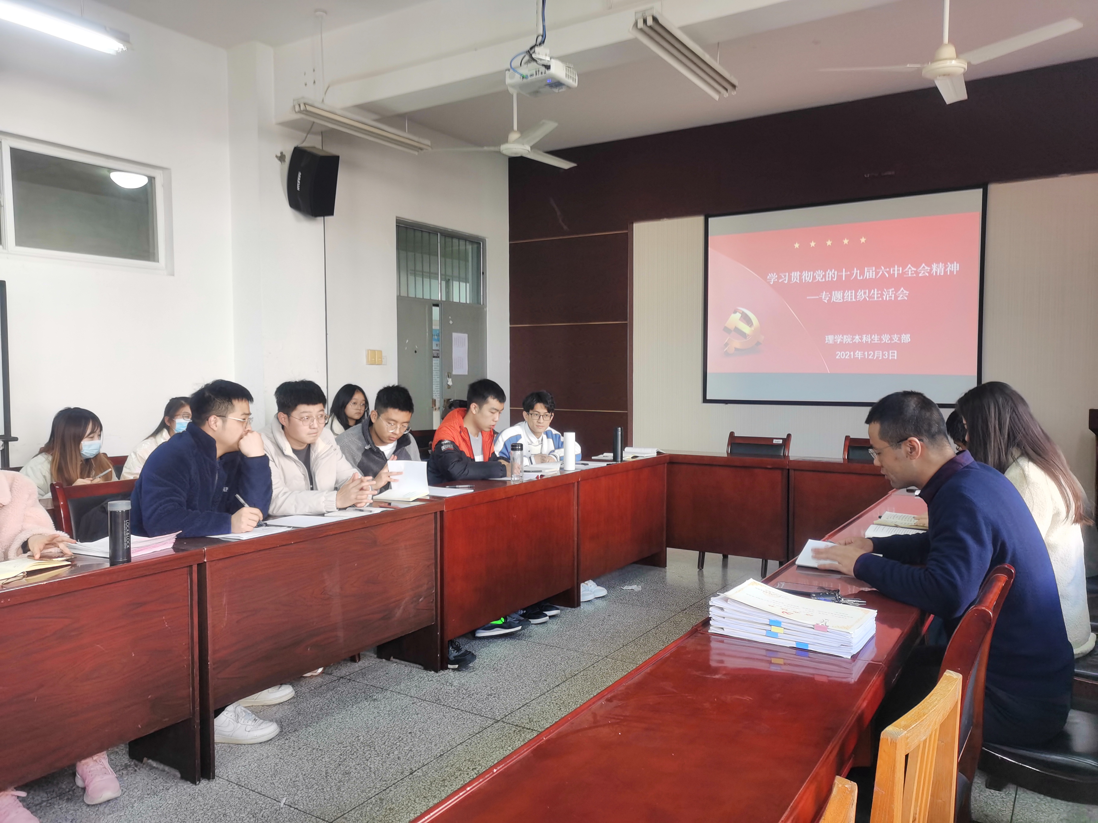 12月3日上午,太阳成tyc122cc本科生党支部在实验楼220会议室召开学习贯彻党的十九届六中全会精神专题组织生活会,会议由党支部书记侯斌刚主持,支部全体成员参会。