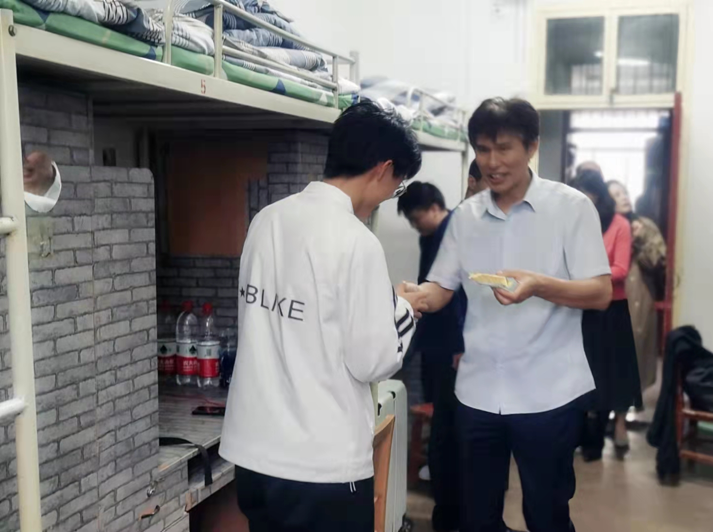 公司为表达对留校员工的关心与祝福,提前精心采购了各种口味的月饼。9月18日中午,公司班子成员及辅导员等来到2021级新生公寓,给同学们送去了香甜的月饼和节日的祝福,让同学们感受到公司的温暖和关怀。发放月饼的过程中,公司领导班子成员详细询问了近期员工学习、生活情况,同时送上中秋祝福。