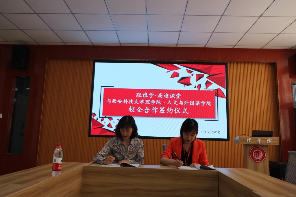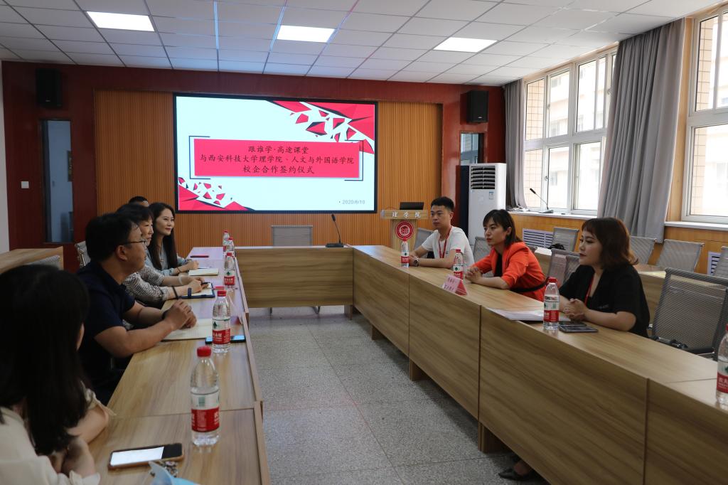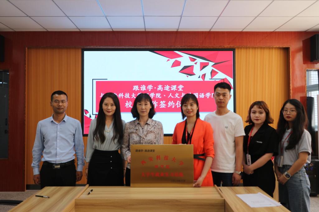 6月10日下午, 西安高途云集教育科技有限公司人力资源部经理刘菲一行四人应邀访问公司,在4号教学楼208会议室举行就业实习基地签字仪式。理公司党委书记孙颜红、党委副书记高欣、辅导员侯斌刚出席签约仪式。双方就就业实习基地的共建,校企合作,员工实习、就业岗位提供、专场招聘会举办等合作事宜进行了座谈与磋商,西安高途云集教育科技有限公司人力资源部刘菲经理与孙颜红书记签订就业实习基地协议并授牌。