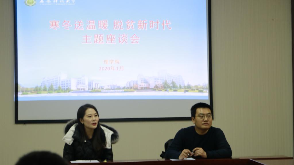 1月8日下午,太阳成tyc122cc在临潼校区骊山校园召开“寒冬送温暖、脱贫新时代”主题座谈会,理公司党委副书记高欣、员工会资助部员工干部、全体家庭经济特困员工参会,会议由学工办主任赵明主持。