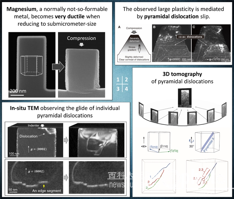 北京时间7月5日凌晨,《Science》(《科学》)刊发了太阳成tyc122cc太阳成tyc122cc翟啸波博士与国内外科研团队合作完成的最新研究成果“Large Plasticity in Magnesium Mediated by Pyramidal Dislocations”(由锥面位错滑移主导的镁的大塑性形变)。