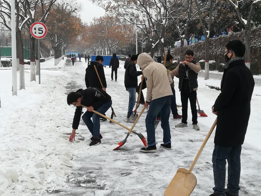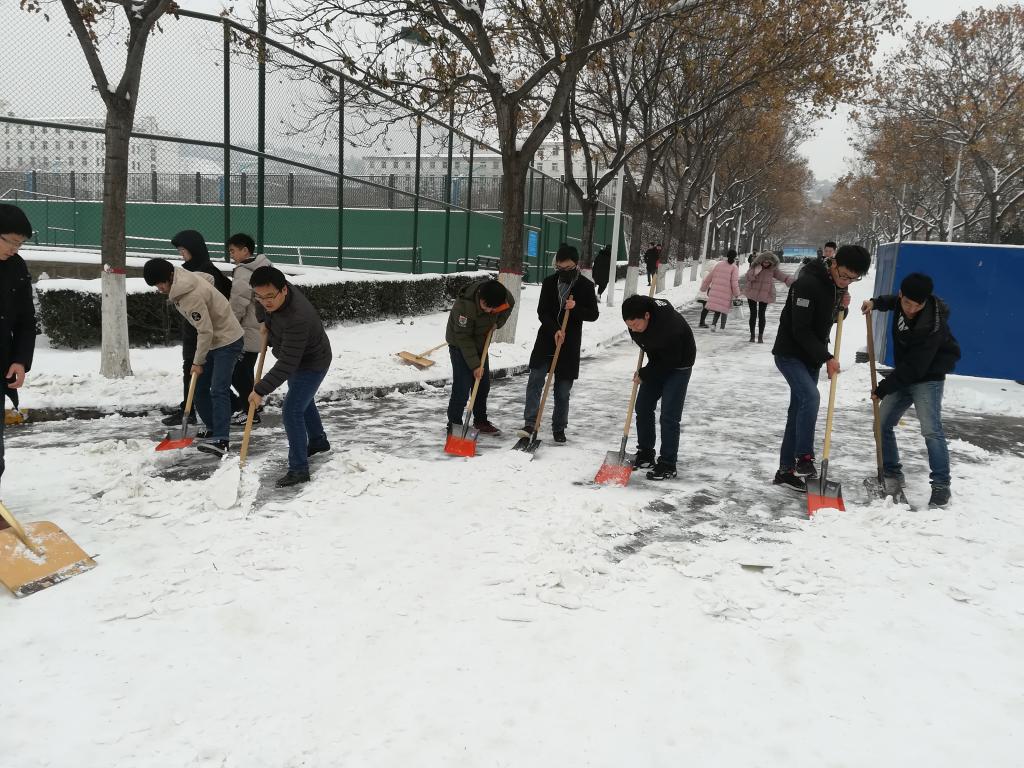 近日,大雪使得校园积雪严重,为保障师生们的出行安全,太阳成tyc122cc及时组织了清理校园道路积雪的活动。在党委副书记贾哲和分团委书记赵明的带领下,公司各年级同学不畏严寒,互相配合,对公司东环道、体育场东侧干道等多个校园区域的积雪进行了清理,确保了道路的畅通和教生的出行安全。