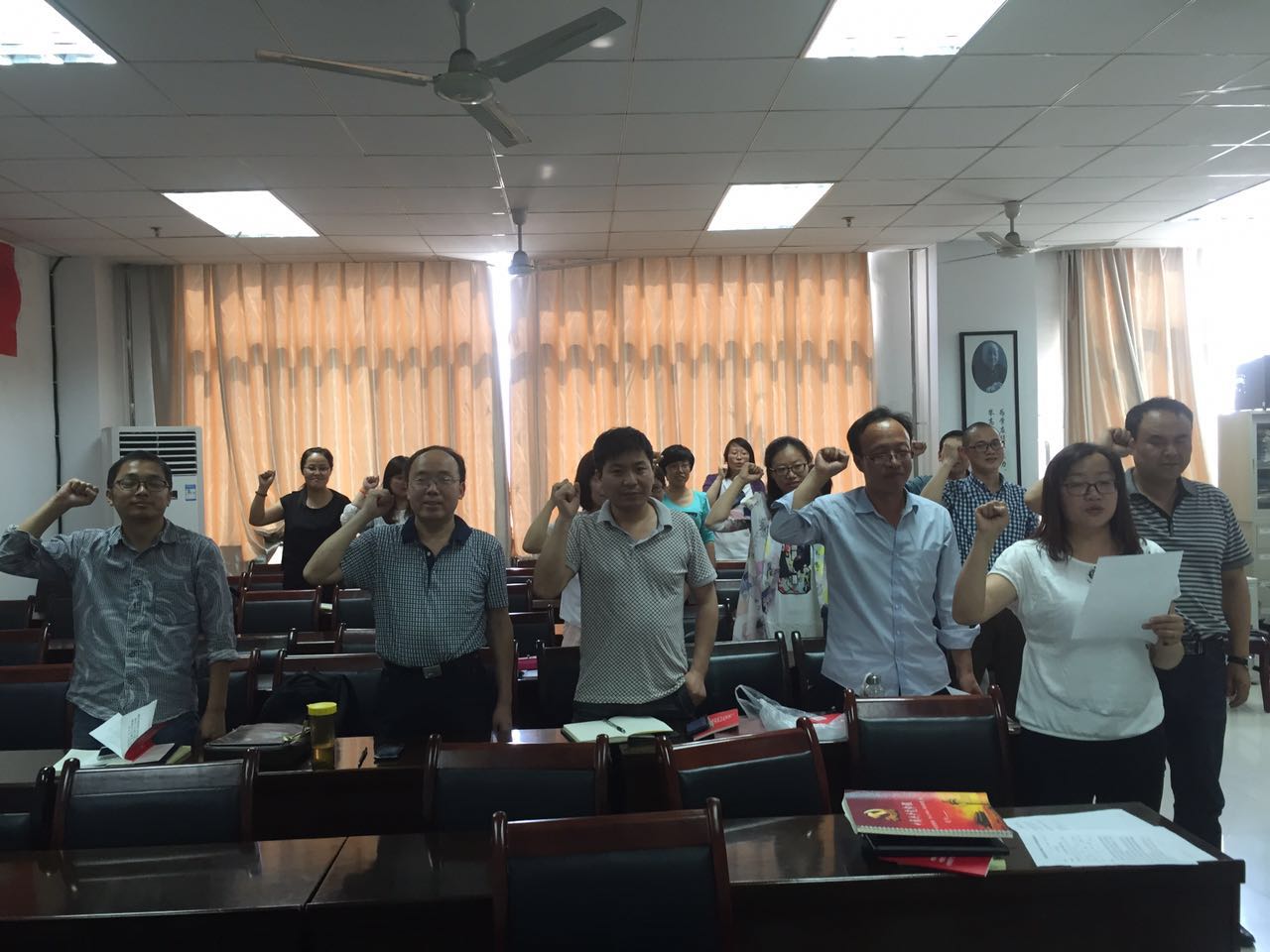 6月3日下午,太阳成tyc122cc教工第一党支部在雁塔校区公司会议室组织“两学一做”专题学习会。宣传委员葛丹同志带领大家重温入党誓词;组织委员夏小刚同志领学《中国共产党章程》总纲部分;党支部书记杨云锋同志对第一党支部“两学一做”6月份的学习教育计划进行安排,他要求支部全体党员要深刻领会“两学一做”学习教育的重要意义,力求做到集中学习有成效、自学研读有收获、学习教育有特色、专题讨论重交流。