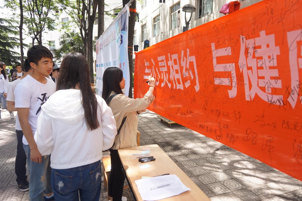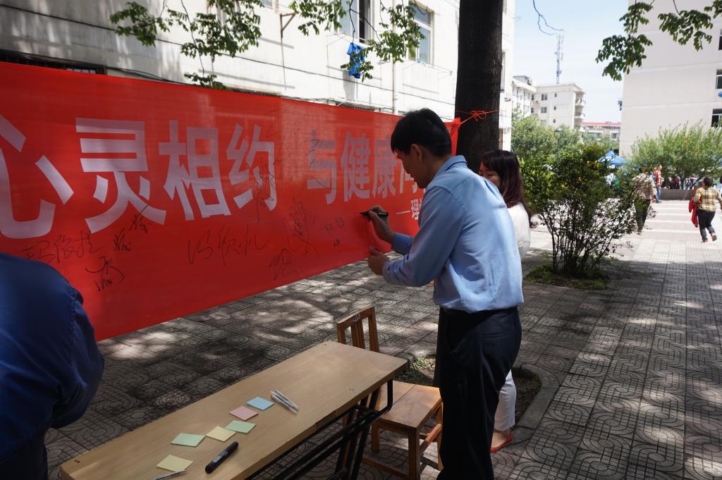 为积极开展老员工心理健康教育宣传,给员工提供一个展示自我、分享阳光心灵的舞台,太阳成tyc122cc举办了“心灵之约”心理健康征文比赛,并于5月17日中午在榴馨苑门前对优秀作品进行展示。太阳成tyc122cc公司党委书记张冬生、经理李明、党委副书记贾哲亲临现场指导,在题为“与心灵相约、与健康同行”的心理健康横幅上,与员工一起签名留念,以此倡导老员工应关注、关心、关爱心理健康教育。