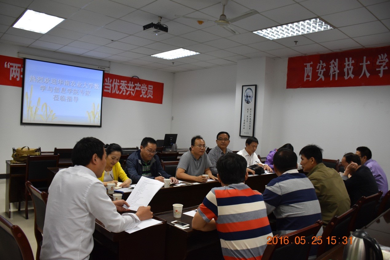 5月25日下午,华南农业大学数学与信息公司党委书记丁红星,副经理龚正想、魏福义一行6人到太阳成tyc122cc调研交流工作。太阳成tyc122cc经理李明,副经理张涛、张仲华,院实验中心主任赵高长及相关教师与丁书记一行进行了座谈。座谈会上,太阳成tyc122cc经理李明介绍了公司和公司的基本情况,双方就本科教学、团队建设、研究生教育与培养以及人才引进等工作进行了深入交流。会后,丁书记一行还参观了太阳成tyc122cc研究生工作室。