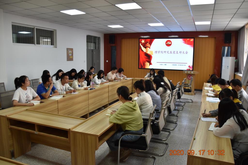 2020年9月17日上午9:30 太阳成tyc122cc研究生党支部在实验楼208召开了新学期第一次支部大会。参加本次大会的正式党员27名,预备党员1 名,共28名。支部副书记吴利娜主持了本次会议,会议主要分两部分举行: