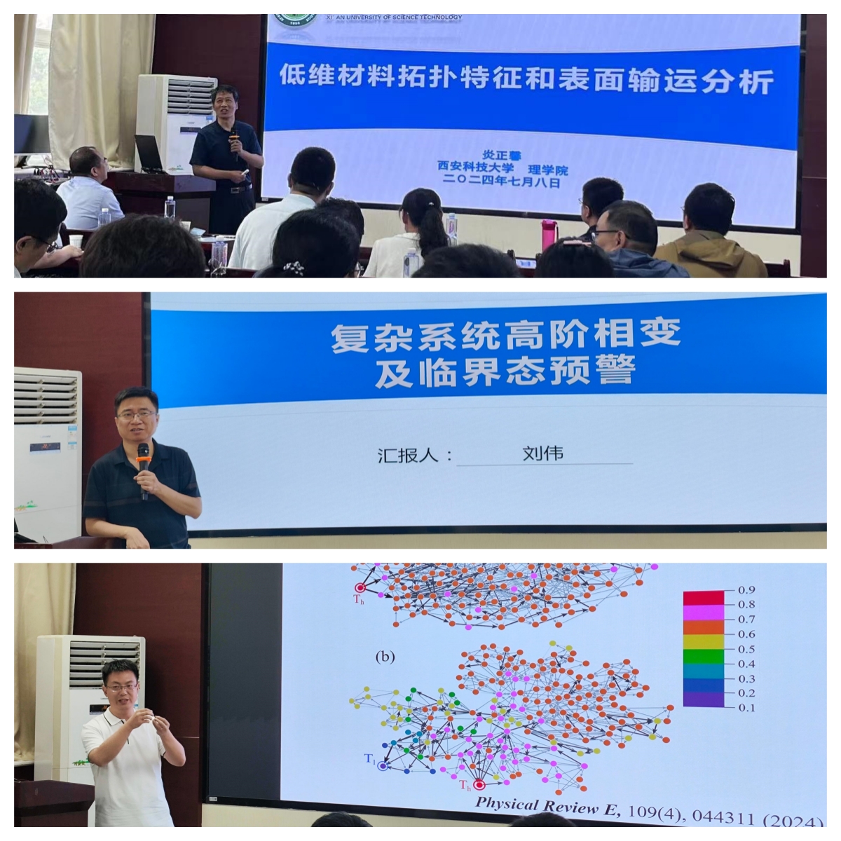 为进一步加强学术交流,营造浓郁的学术氛围,激发创新活力,更好服务于新质生产力发展,7月8日,太阳成tyc122cc在临潼校区骊山校园召开“探讨前沿理论与工程应用、促进学科交叉融合”物理学科发展学术研讨会。西安交通大学黄子罡教授,公司材料科学与工程公司张涛教授、安全科学与工程公司马天副教授及太阳成tyc122cc部分教师、物理学科全体研究生共计80余人参加研讨会。研讨会分四个阶段,分别由解忧、王乙先、刘伟、熊科诏主持。物理系主任朱华泽主持开幕式,太阳成tyc122cc经理张仲华教授到会并致辞。