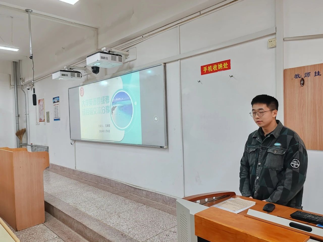 为进一步激发同学们对备考英语四级的热情,侯斌刚表扬了前几次英语四级模拟考试中成绩突出的同学和优秀宿舍,并为他们颁发了奖状和奖品。
