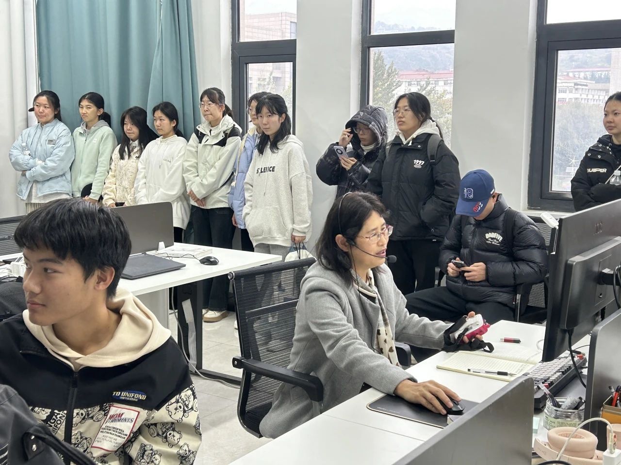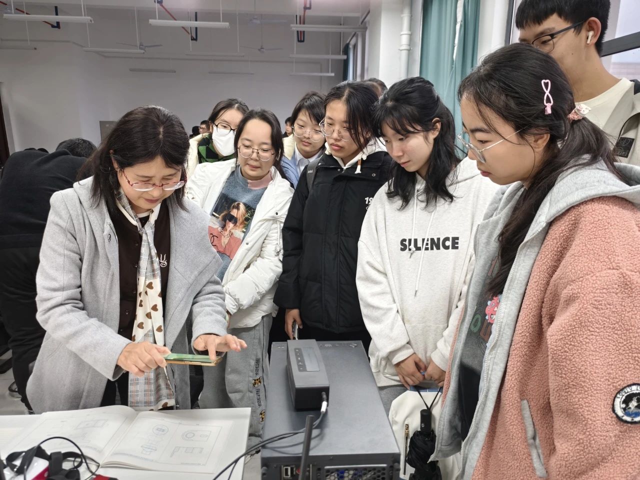 刘佳向同学们介绍了虚拟技术培训基地,基地主要为全校本科生对AR或VR技术感兴趣的同学提供辅导,并组织员工参加比赛及对外承担项目,以提升能力为目标。刘佳还展示了基地的项目成果,激发了同学们投身创新创业的热情。