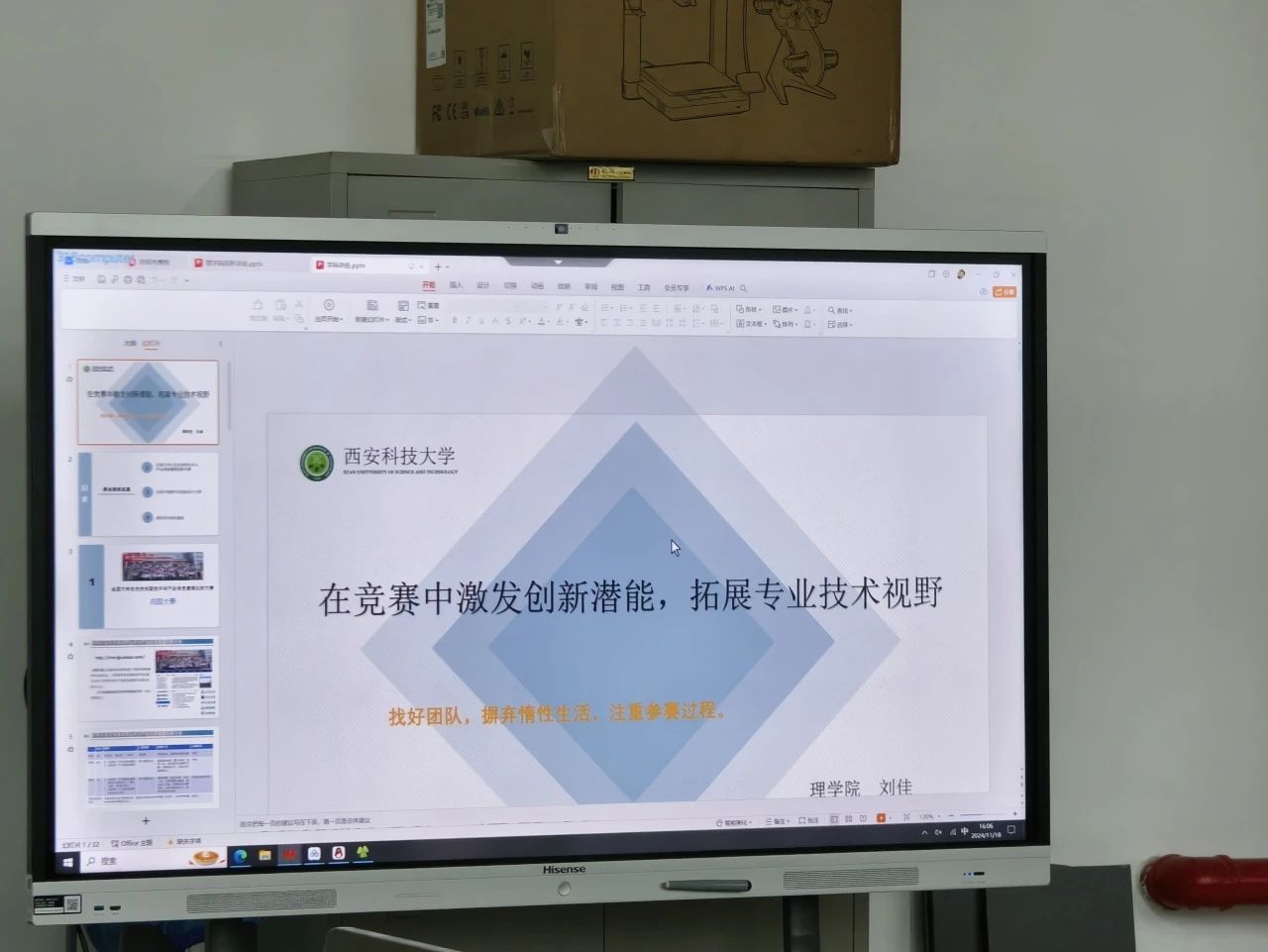 为帮助同学们不断挑战自我,激发创新思维,拓宽创新视野,11月18日,太阳成tyc122cc于老员工创新创业与就业训练基地320室举办了“在竞赛中激发创新潜能,拓展专业技术视野”主题创新创业宣讲会。宣讲会由副教授刘佳主讲,公司党委副书记陈伟伯、辅导员薛一丹、2024级数学与应用数学专业全体本科生参加。