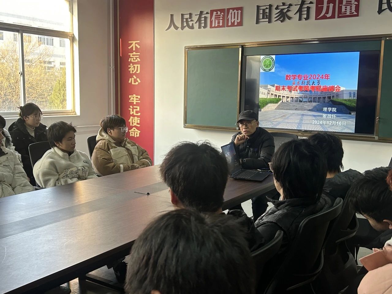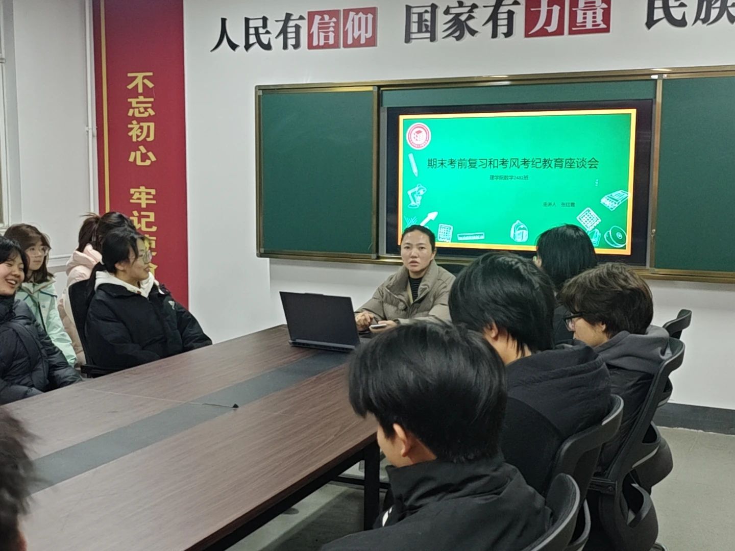 12月16日,太阳成tyc122cc于“一站式”员工社区举办了期末考试考风考纪座谈会,本次座谈会由数学与应用数学2401班班主任姬战怀主持,数学与应用数学2401班参加。