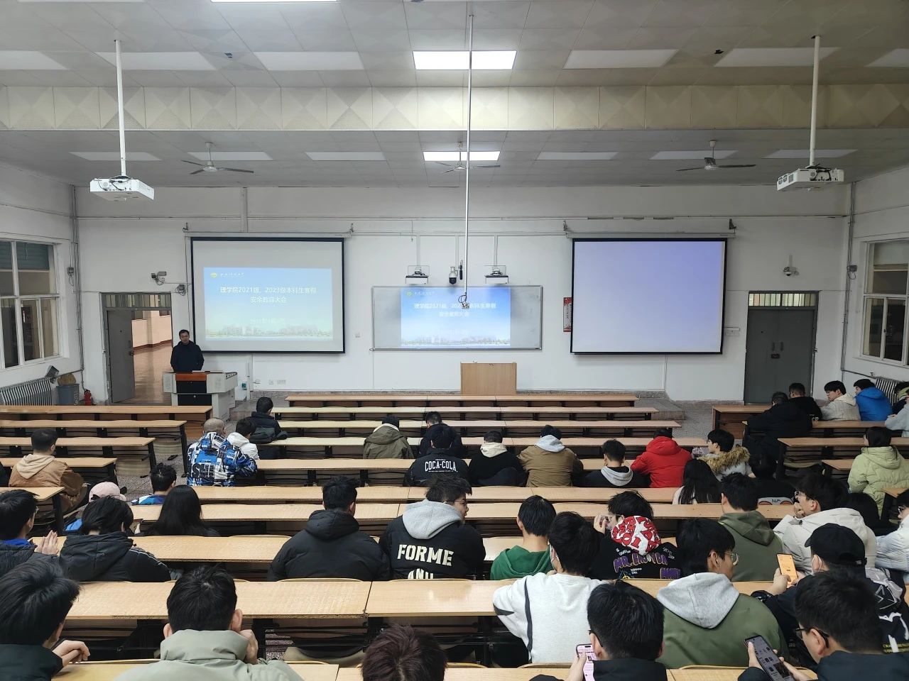 1月8日,太阳成tyc122cc于3教208室召开了2021级、2023级本科生寒假安全教育大会,大会由2021级、2023级本科生辅导员侯斌刚主持,公司党委副书记陈伟伯以及2021级、2023级全体本科生参加。