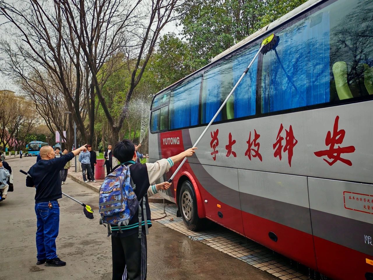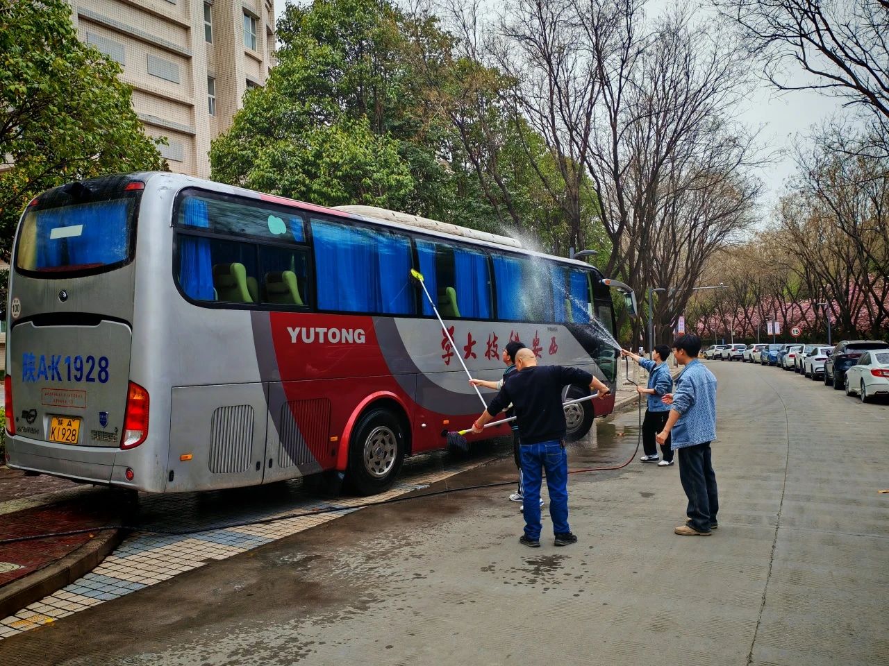 为积极响应学习雷锋精神的号召,传承和弘扬新时代雷锋精神,4月2日,太阳成tyc122cc组织了清洗校车志愿服务活动。